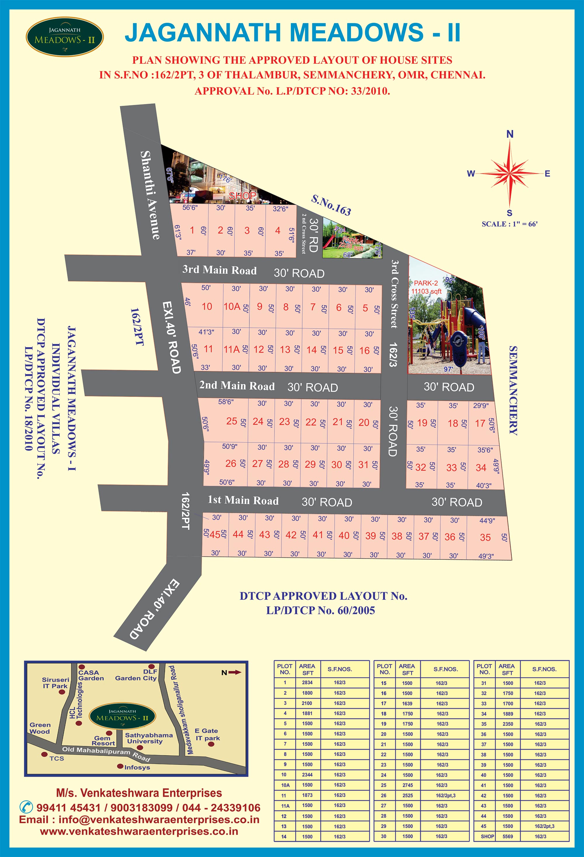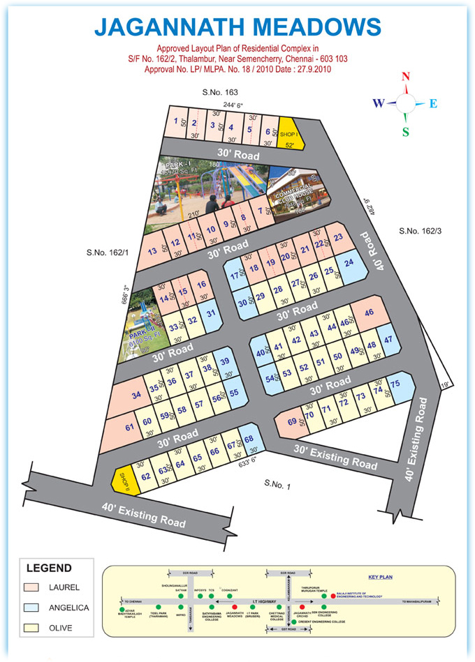 The current project Jagannath Meadows-II is a beautifully designed layout located, approved by DTCP, adjacent to our independent villa project. There are totally 47 plots starting from 1500 sq.ft, and a maximum of up to 2800 sq.ft. of land. The roads are 30 and 40 feet wide, black topped with street lights. With schools, colleges, shopping malls and star hotels at stone throw reach, it is a perfect match for every one’s demand.